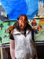 Les enfants ont peint (à la gouache) à l'arrière plan une montagne avec la tanière du dragon